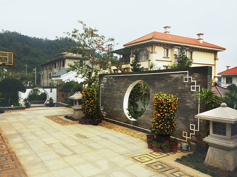 大部分別墅庭院會兼有規(guī)則式和自然式的特點,這便是混合式庭院?;旌鲜酵ピ罕憩F(xiàn)形式,第一類是在規(guī)則的構(gòu)成元素上呈現(xiàn)自然式,歐洲古典貴族庭院為此類特點代表之一;第二類是在自然式構(gòu)成元素上呈規(guī)則式布局,如中國北方的四合院庭院,由規(guī)則的硬質(zhì)構(gòu)造物與自然的軟質(zhì)元素自然連接,方形或圓形的硬質(zhì)鋪地與天然的植物景觀和外緣不規(guī)則的草坪結(jié)合在一起,給自然的坡地加上了人工的精巧。