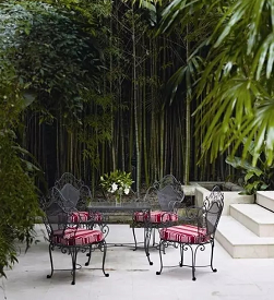不論別墅花園庭院有多大,那些可以提供方位感的簡單標(biāo)志物都能將空間上的前景、中景、遠(yuǎn)景清楚地連接起來,能承擔(dān)此項(xiàng)工作的參照物包括長椅、座椅、門、涼亭、花盆組合以及其他裝飾物。