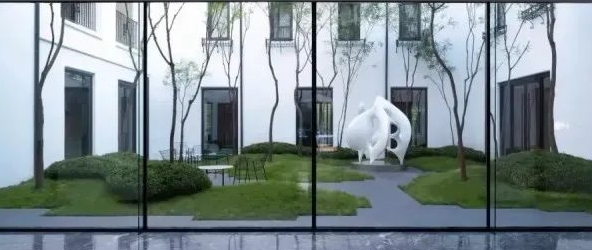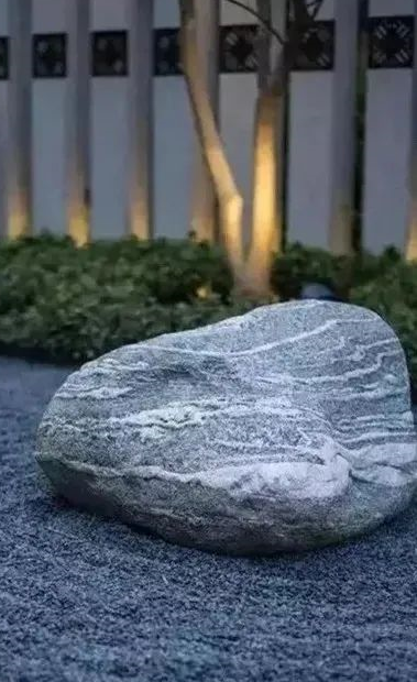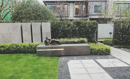 木板、石頭、抽象雕塑品都是現(xiàn)代風(fēng)格別墅庭院的常用元素