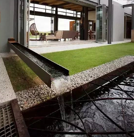 別墅庭院設(shè)計(jì)中,不乏以水池為中心,配以山石、游魚、睡蓮等,營(yíng)造出溪澗、泳池、涌泉、池塘、小瀑布等形式,帶來(lái)分外怡人的景致,為空間帶來(lái)更多活力及趣味,也有正旺宅氣的作用。